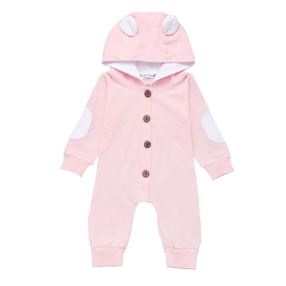 Good Offer for Newborn baby boy girl cute hoodie clothes jumpsuit jumpsuit tight clothes small ear patch button