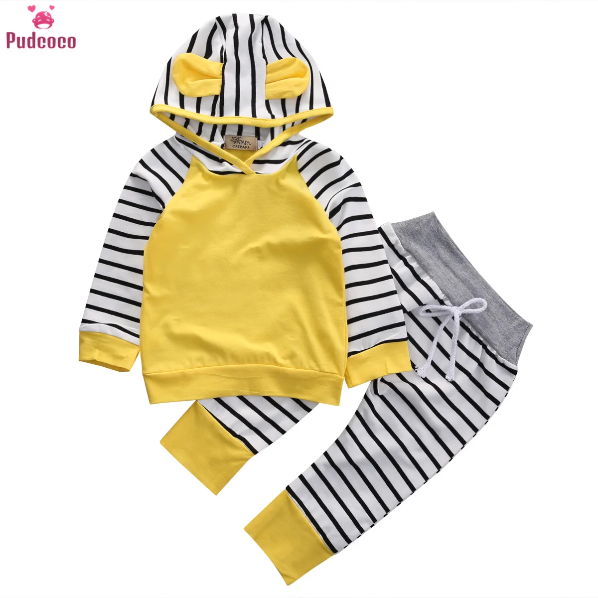 Best Offer of Newborn Baby Boys Girls Romper Hooded Sweatshirt Pants Striped Long Sleeve hoodie Infant kids Fall